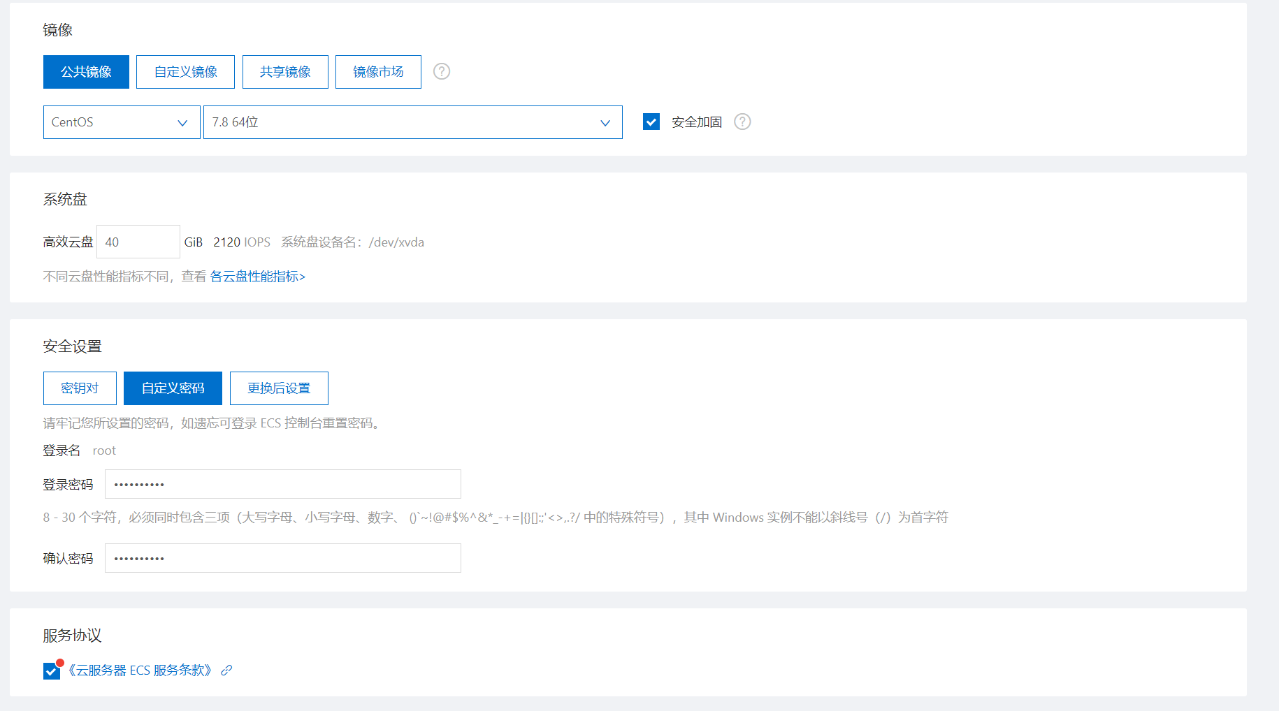 我选用的是阿里云的服务器,系统为Centos 7.8 64位