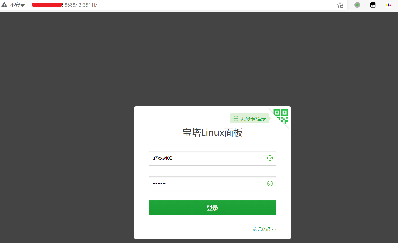 复制外网面板地址,按照给定的用户名和密码登录宝塔面板: