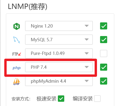 此处要特别注意的是PHP的版本(2021年8月5日有效):