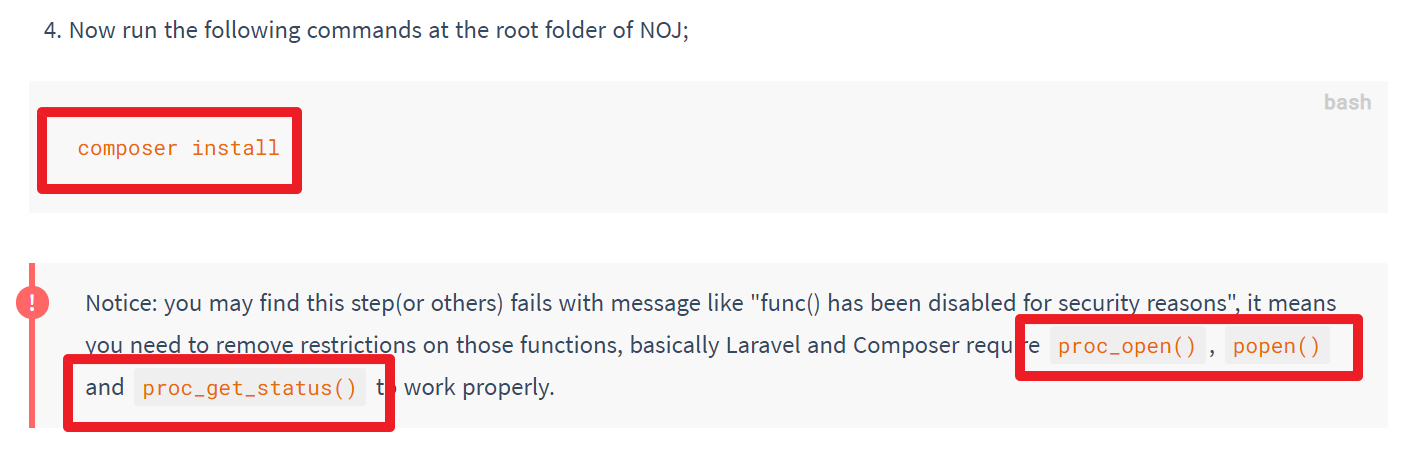 我们需要先解除对一些php函数的禁用,再执行composer install。