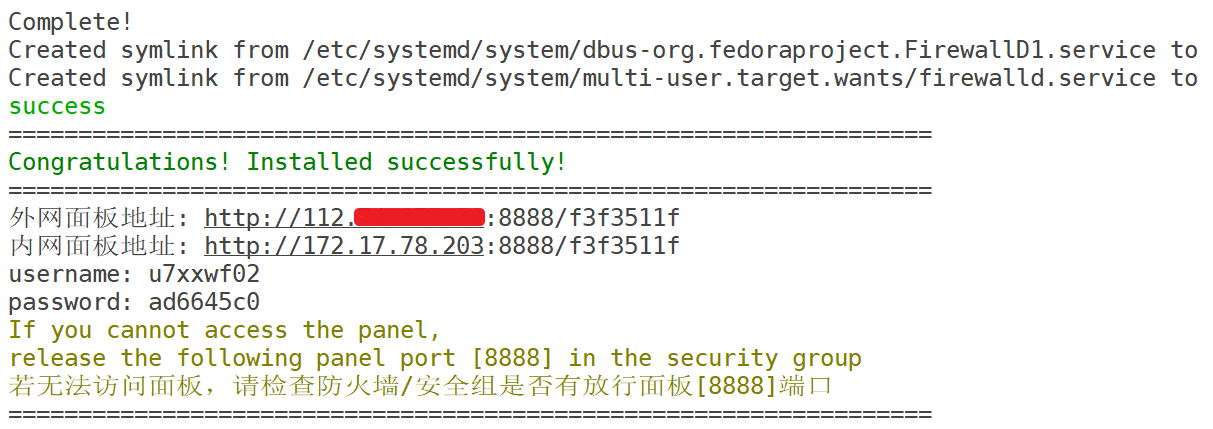 复制外网面板地址,按照给定的用户名和密码登录宝塔面板: