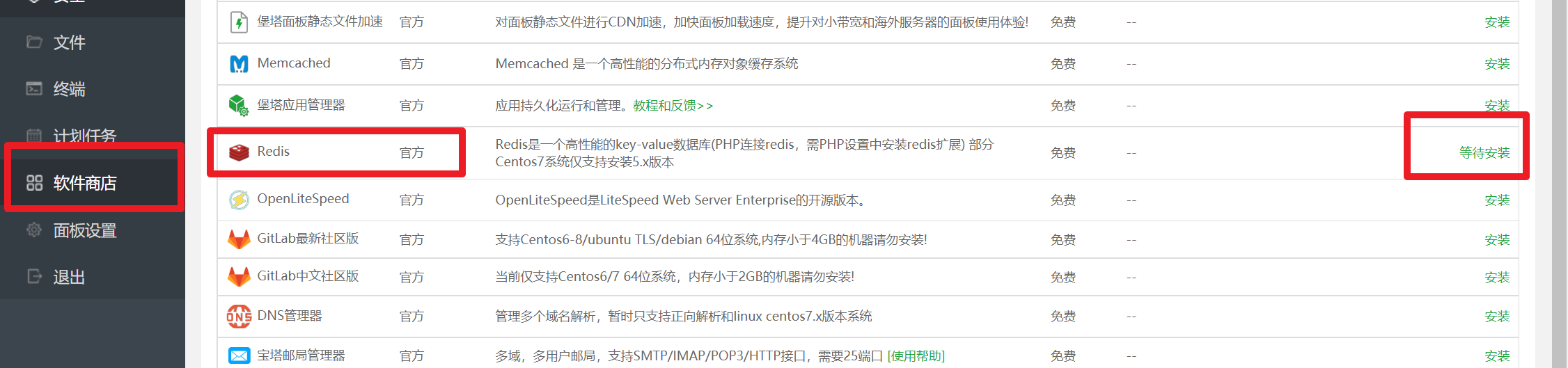 然后再去应用商店安装Redis,这里安装的是6.2版本: