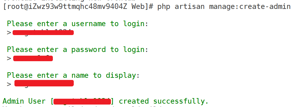 此时会根据你设置的.env自动进行创建数据库表等操作。